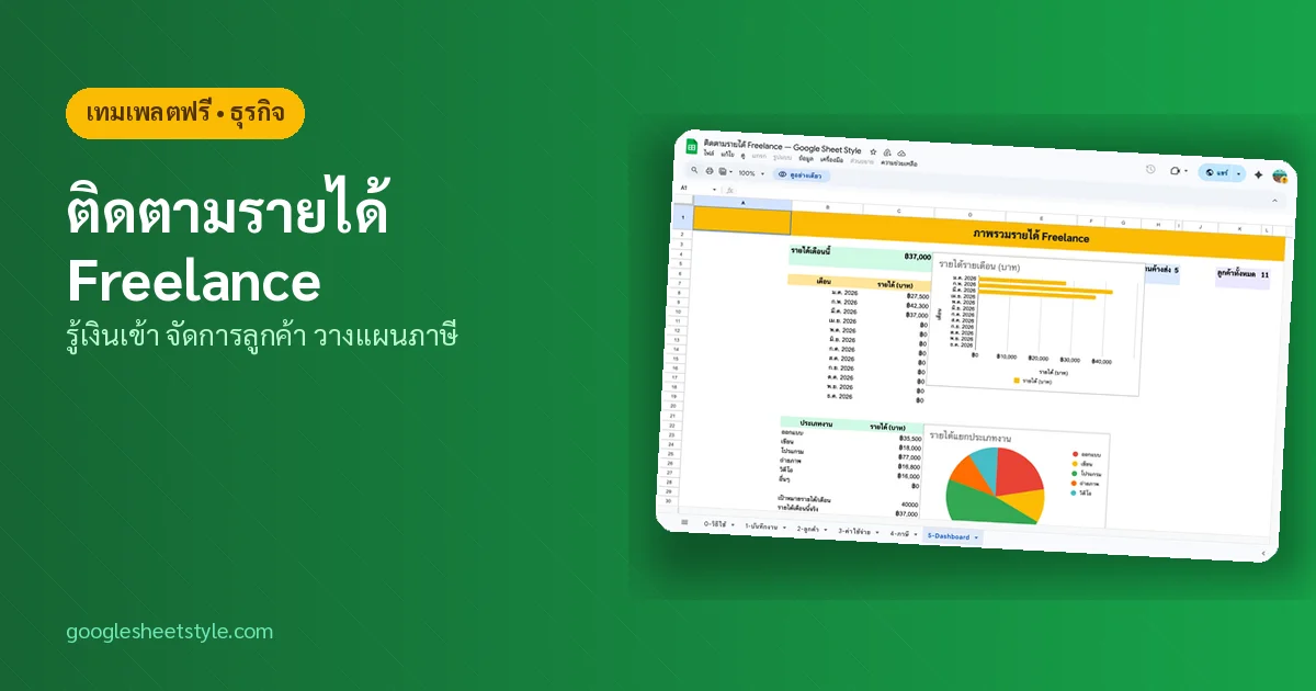 เทมเพลต Freelance Tracker บน Google Sheets นี้แก้ทุกปัญหา —บันทึกงาน ดูสถานะเงิน จัดการลูกค้า ประมาณการภาษี ทั้งหมดในไฟล์เดียว