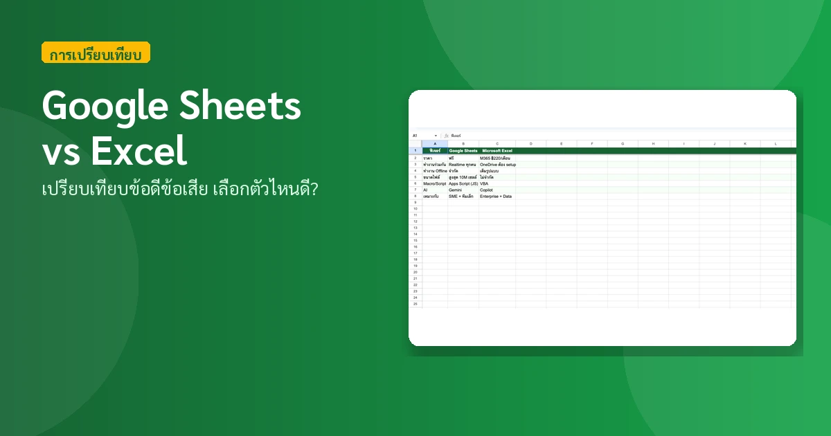 สรุป: ถ้าไม่มี license Excel อยู่แล้ว → Google Sheets เริ่มต้นง่ายกว่าเพราะฟรี