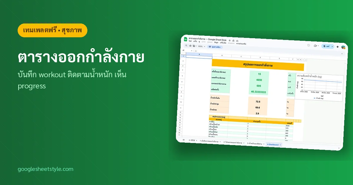 ทั้งหมดนี้แก้ได้ด้วยการบันทึกที่ใช้เวลาแค่ 2 นาทีหลังออกกำลังกาย Google Sheets ทำงานได้บนมือถือ ไม่ต้องพกสมุด ไม่ต้องลงแอปเพิ่ม